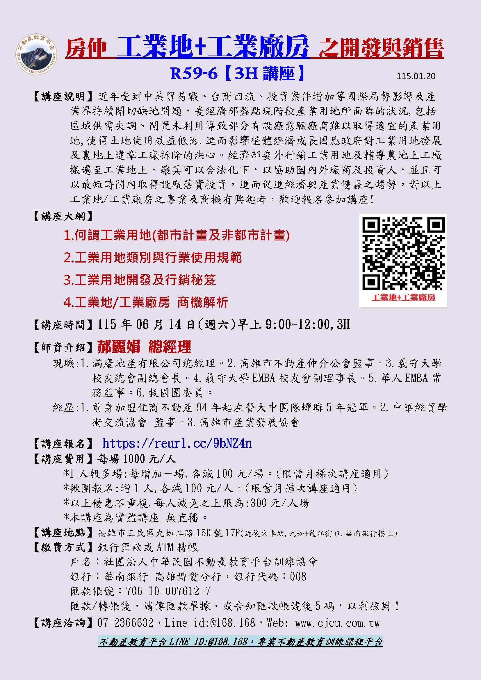 6/14上午R59-6談 工業地工業廠房之開發與銷售-郝麗娟總經理(6/14週日上午)