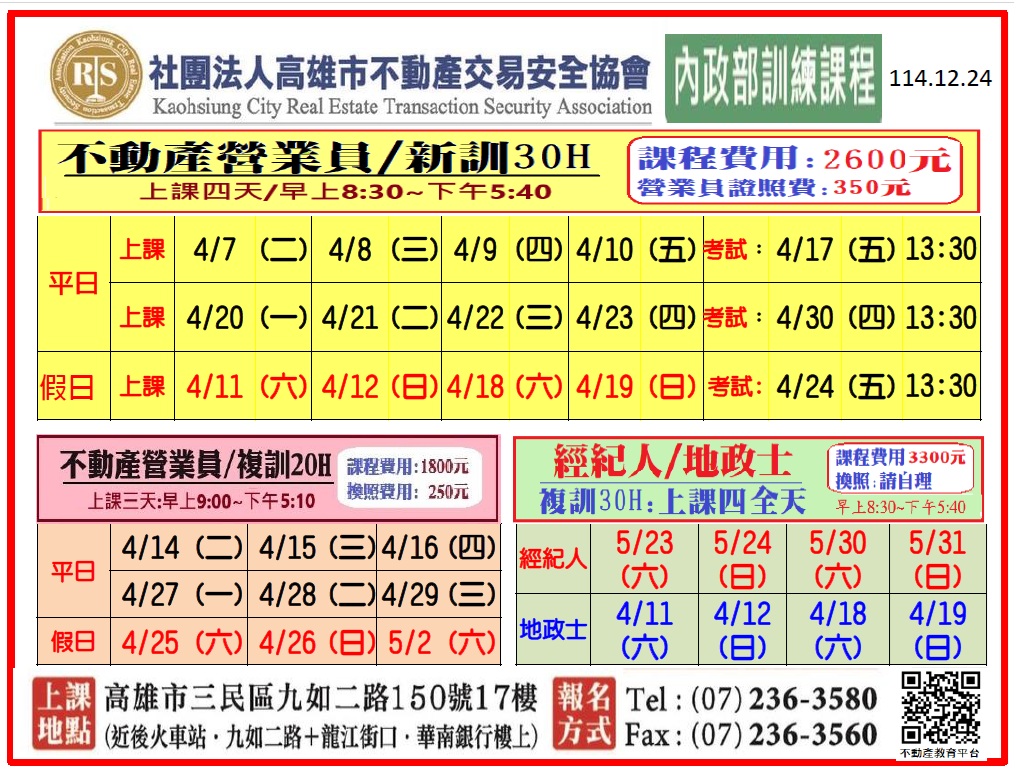 4/11營業員新訓30H-假日班(4/11.12.18.19 週六日,考試4/24下午)