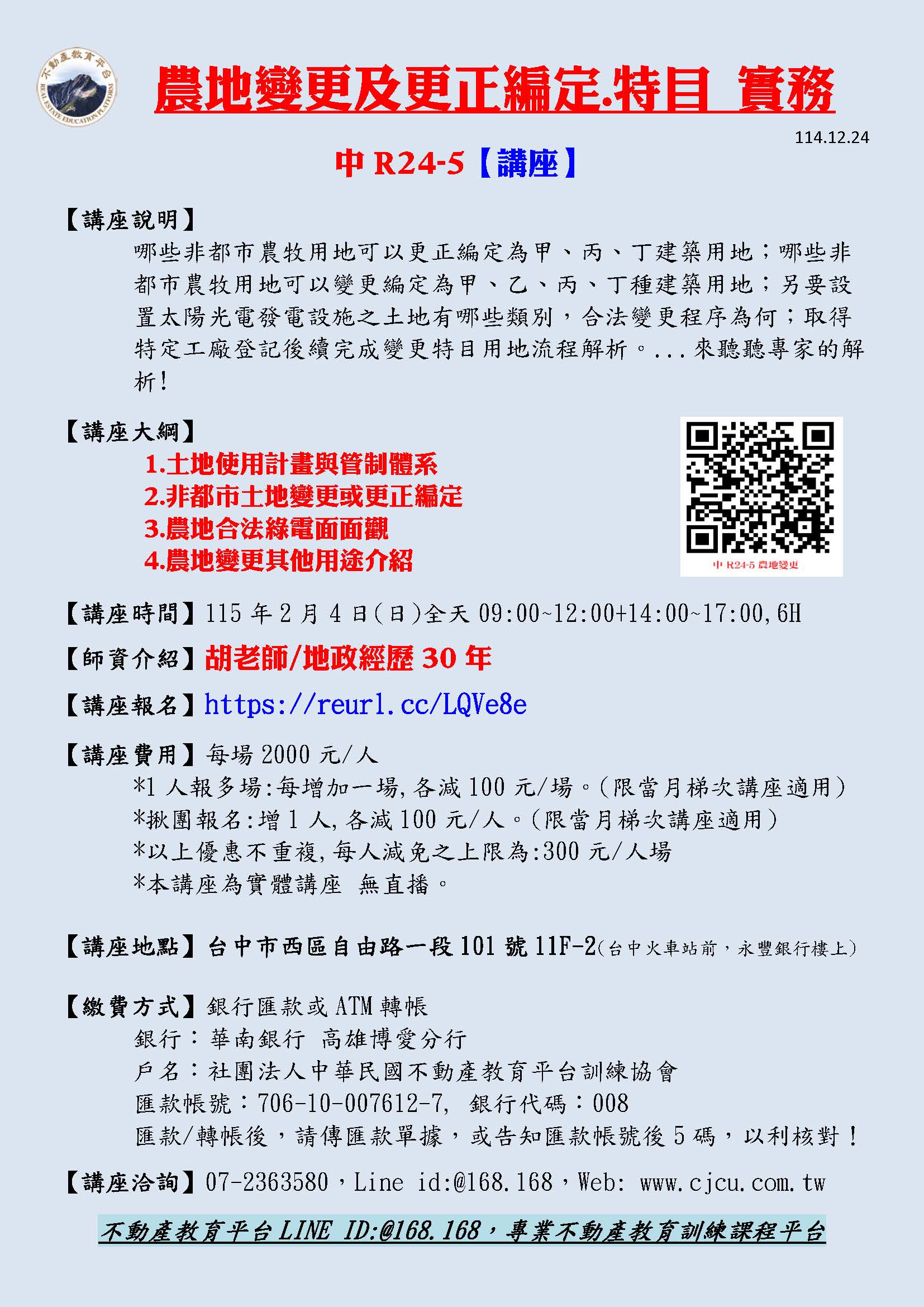 -台中2/4周三-R24農地變更及更正編定/特目/5期-胡純英老師(2/4全天)-6H