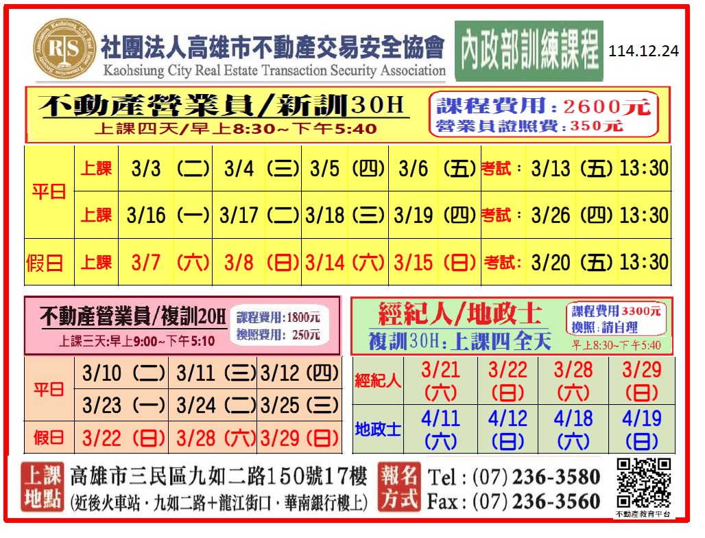 3/21經紀人複訓班-30H-假日班(3/21.22.28.29 週六日上課)