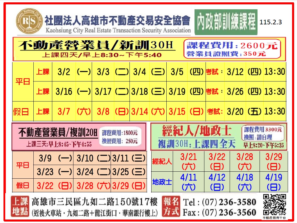 3/2營業員新訓30H-平日班(3/2.3.4.5 週一~四,考試3/12下午)