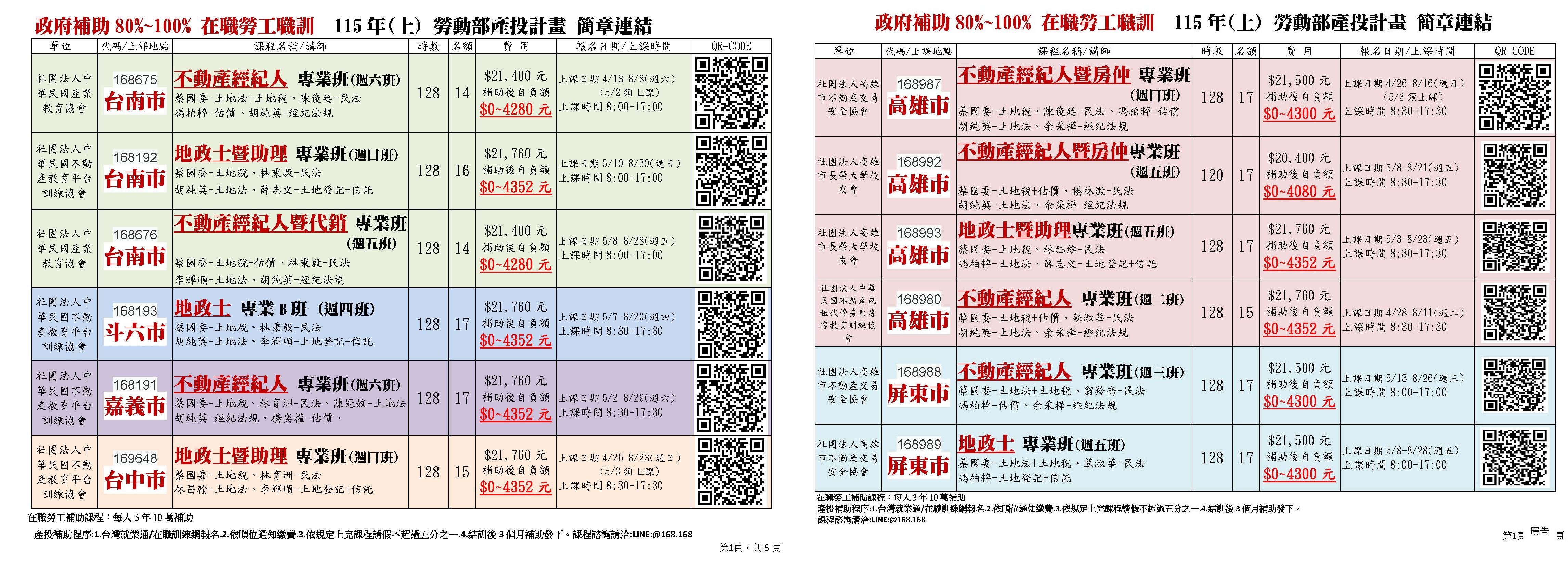 5/8屏東-B255五產屏-地政士專業班128H(週五)5/8-8/28