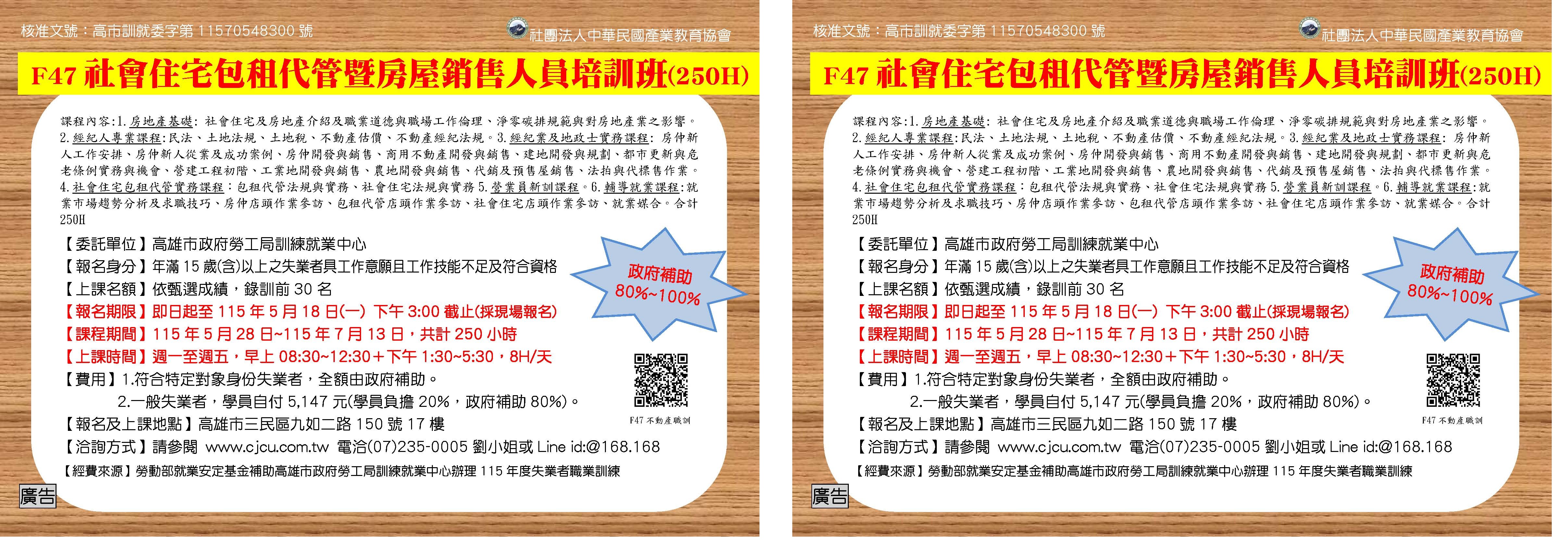 F47 社會住宅包租代管暨房屋銷售人員培訓班250H_0528-0713