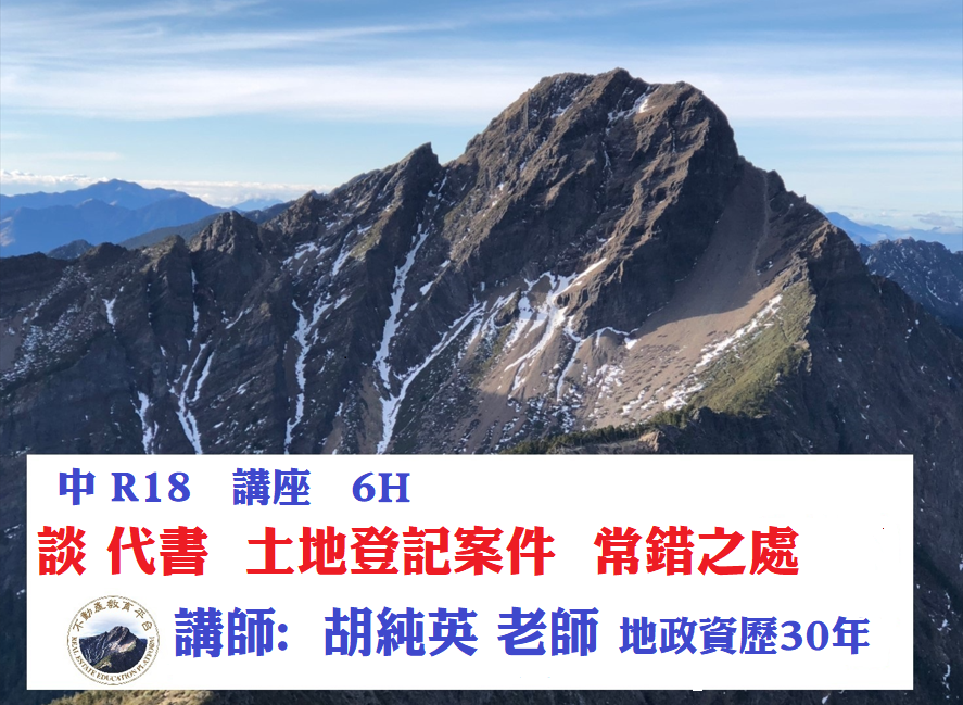 -台中3/27周五-R18談代書 土地登記案件常錯之處3期-胡純英老師(3/27週五全天)-6H