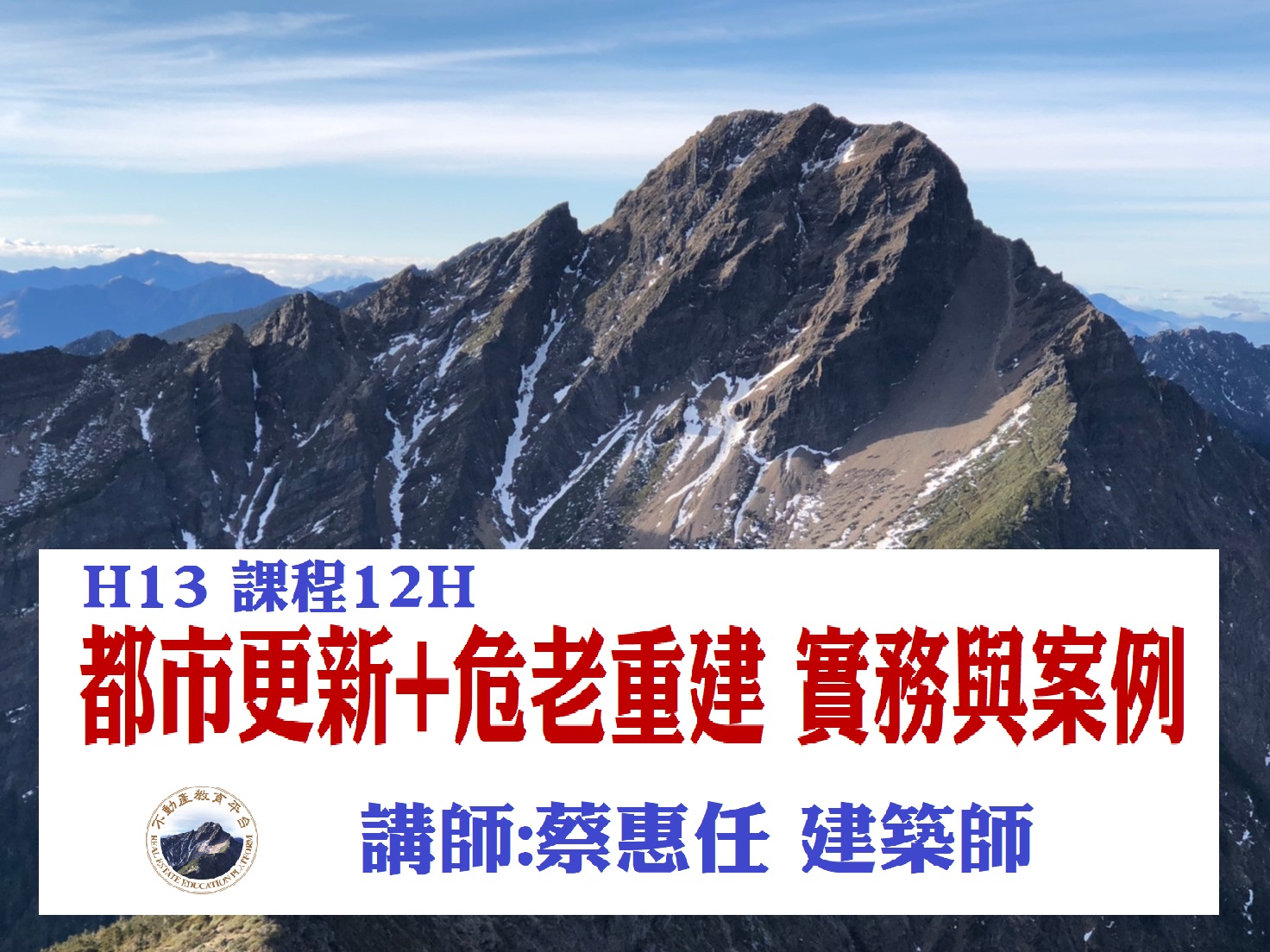 台中3/21週六-R57都市更新+危老重建 契機與展望/4期-蔡惠任老師(3/21全天)6H