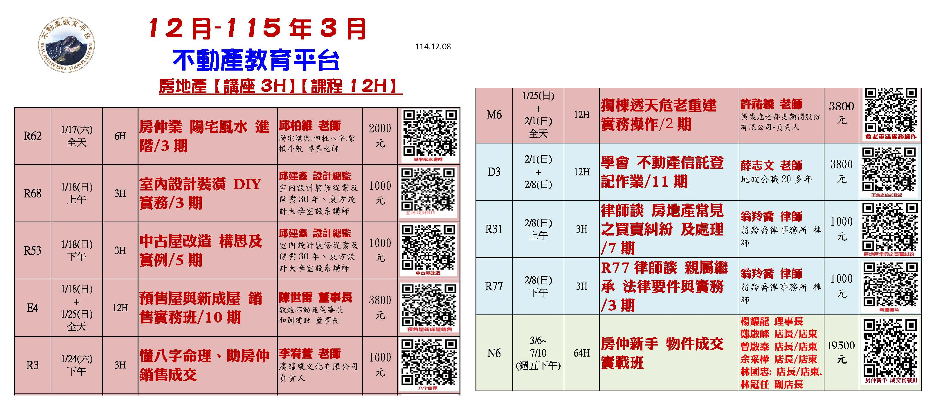 115.1/17講座-R62房仲業陽宅風水 進階/3期-邱柏維老師(1/17週六全天) 6H