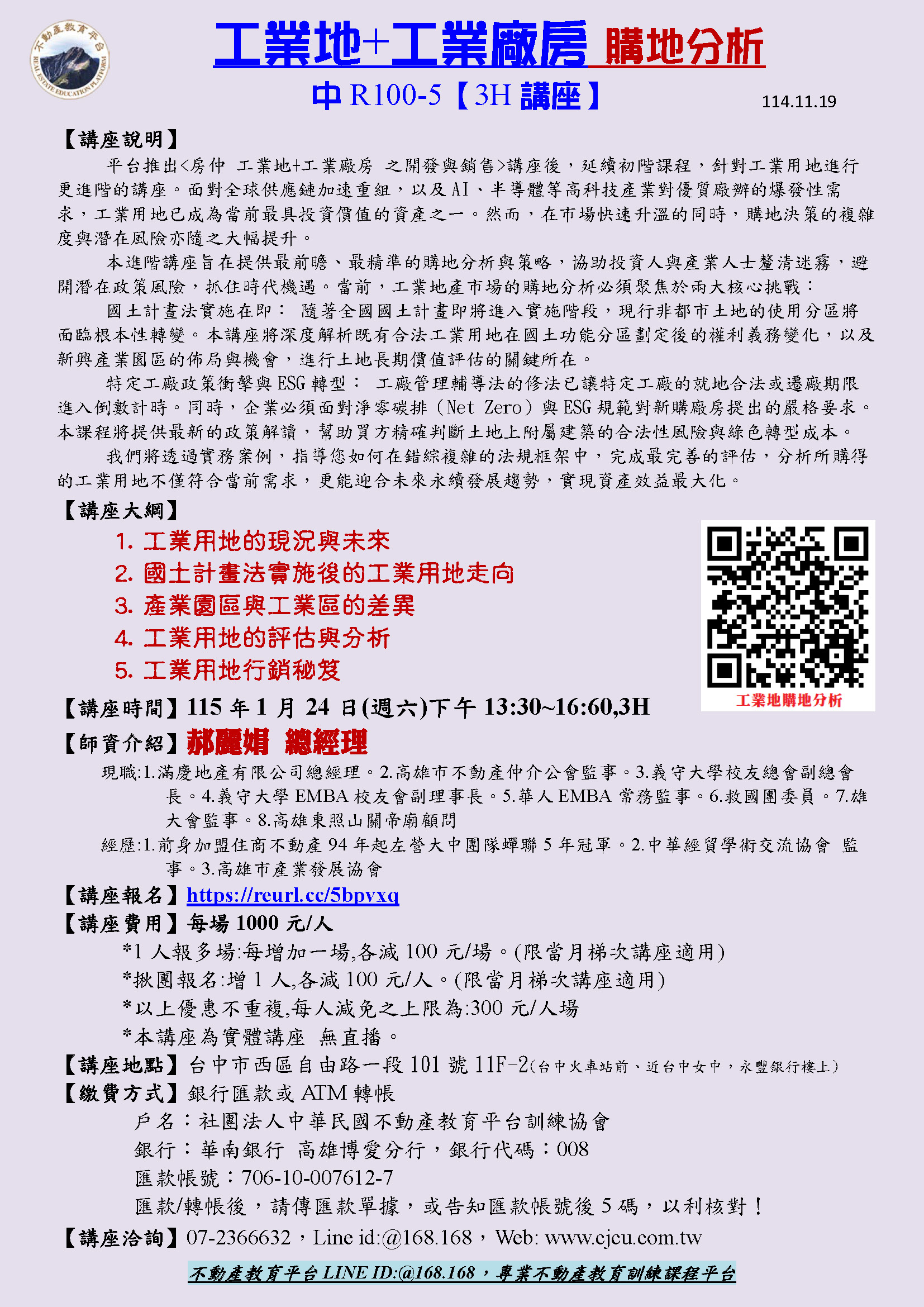 台中1/24下午R100-5工業地+工業廠房 購地分析-郝麗娟總經理(1/24週六下午)