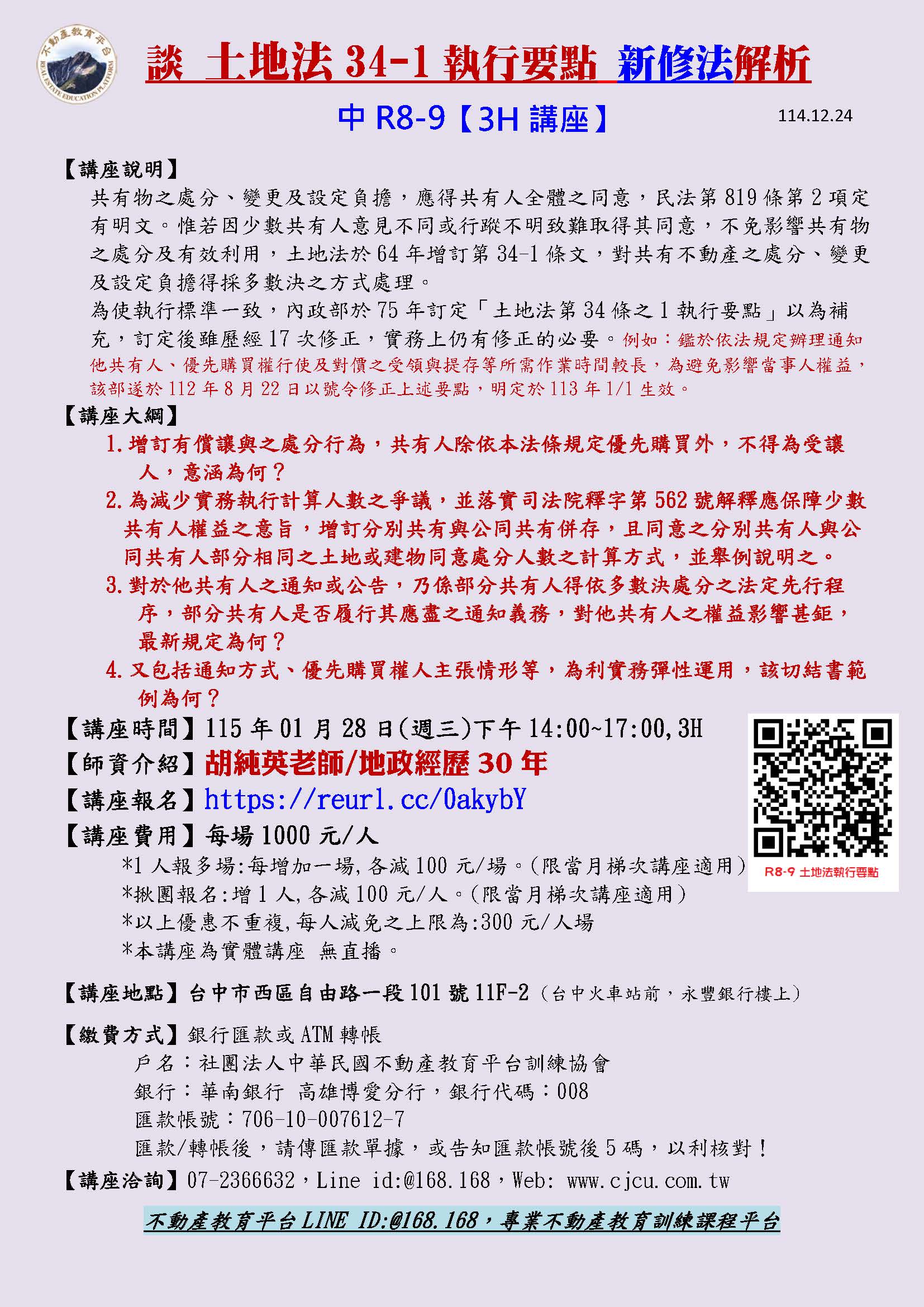 -台中1/28周三-R8談土地法34-1執行要點/9期-胡純英老師(1/28下午)-3H