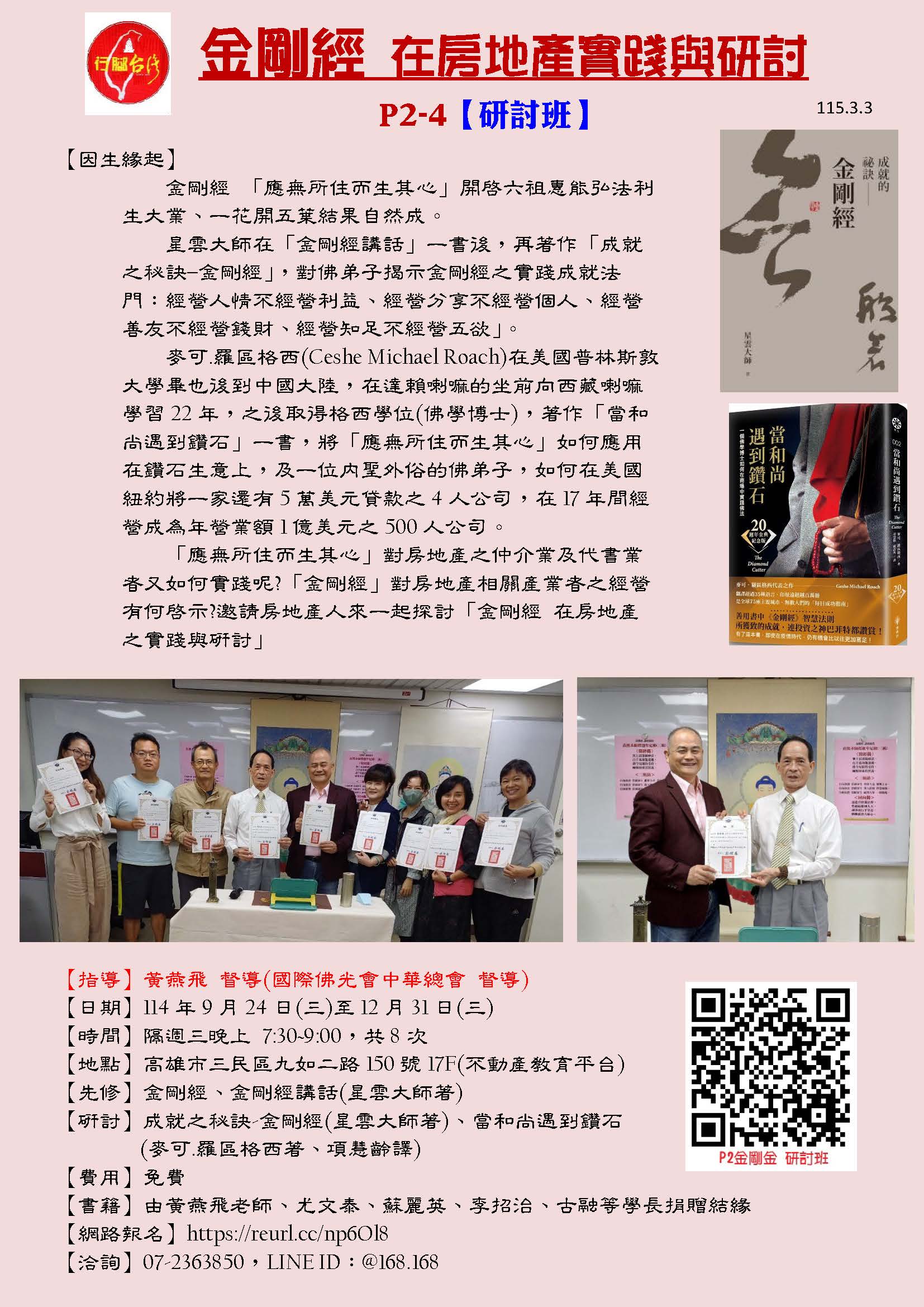 4/29(三)P2金剛經-在房地產實踐與研討4期4/29-8/5隔週三晚7:30~9:00黃燕飛督導