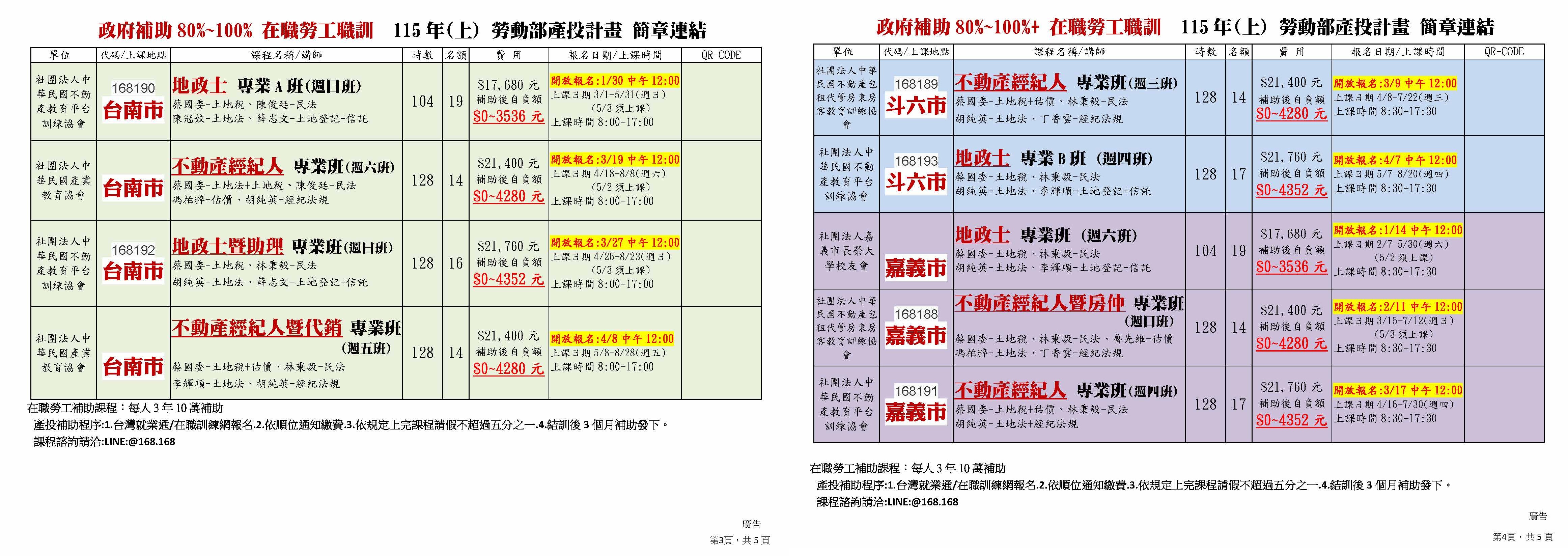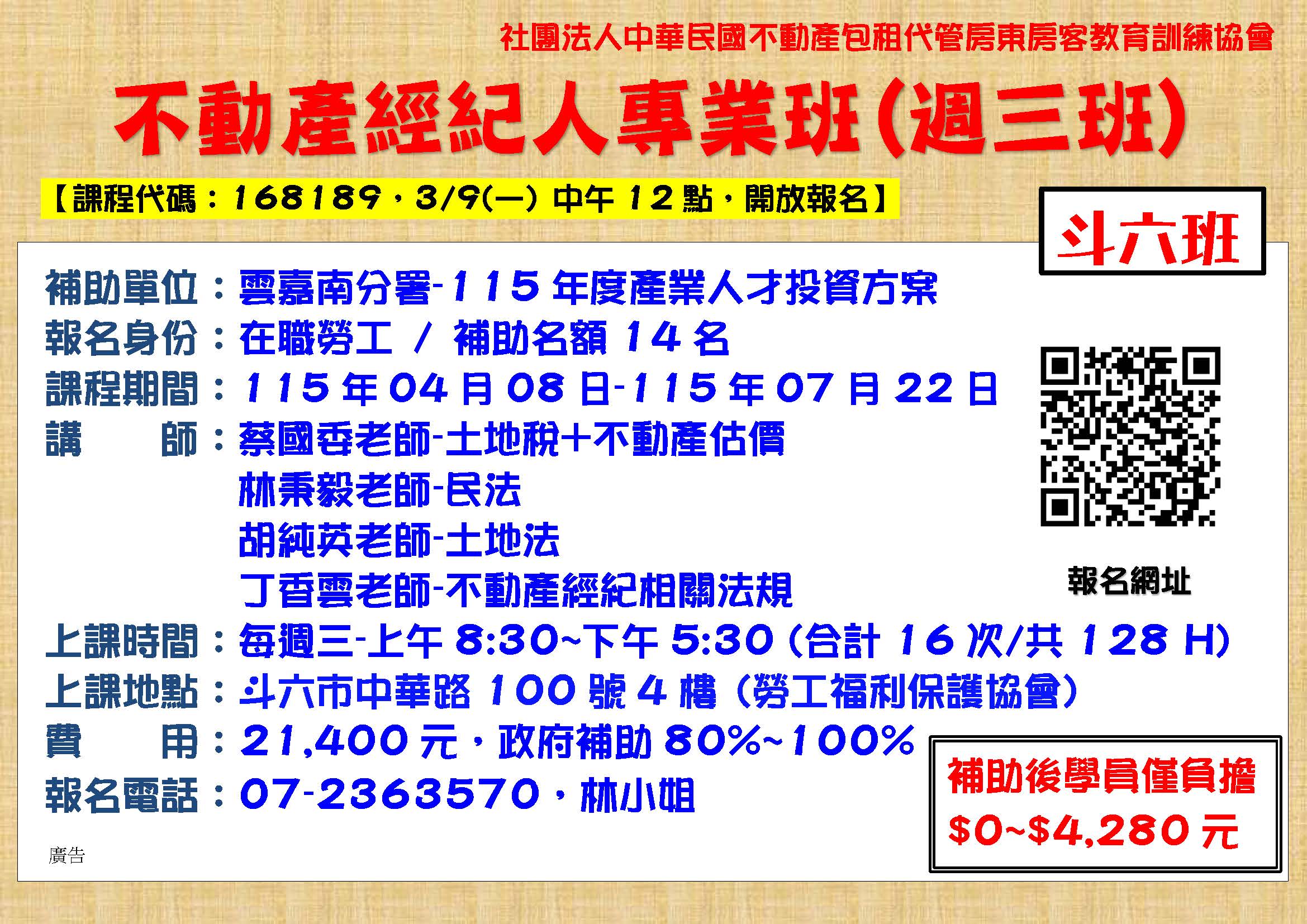 4/8斗六-B154三產雲-不動產經紀人專業班128H(週三)4/8-7/22