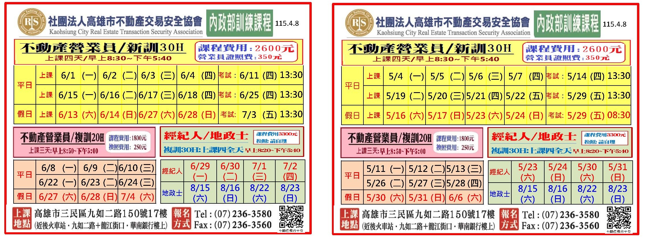 5/8高雄-B155五產高-不動產經紀人暨房仲專業班120H(週五)5/8-8/21